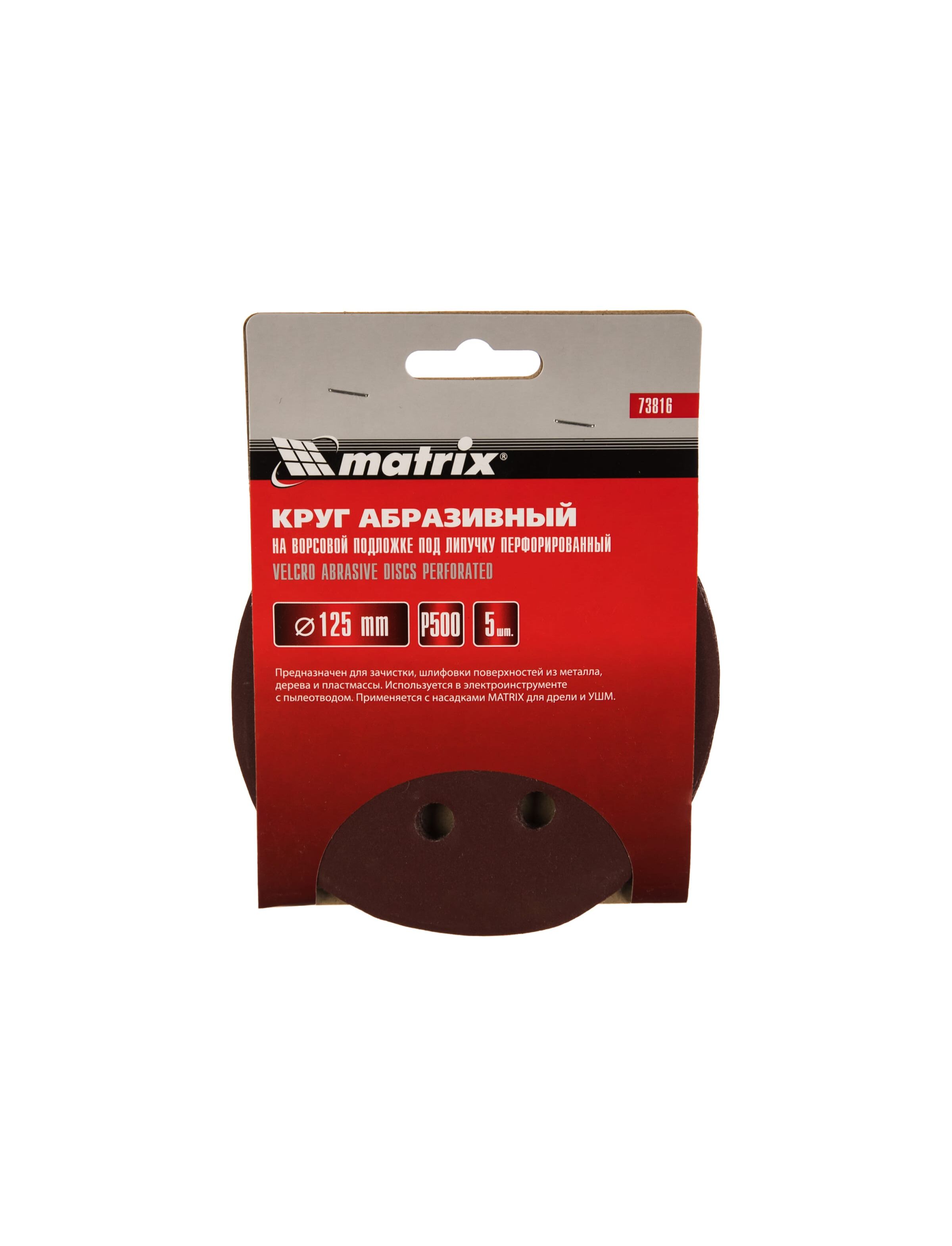 Круг абразивный на ворсовой подложке под "липучку" перфорированный 125 мм P500 5 шт MATRIX 73816
