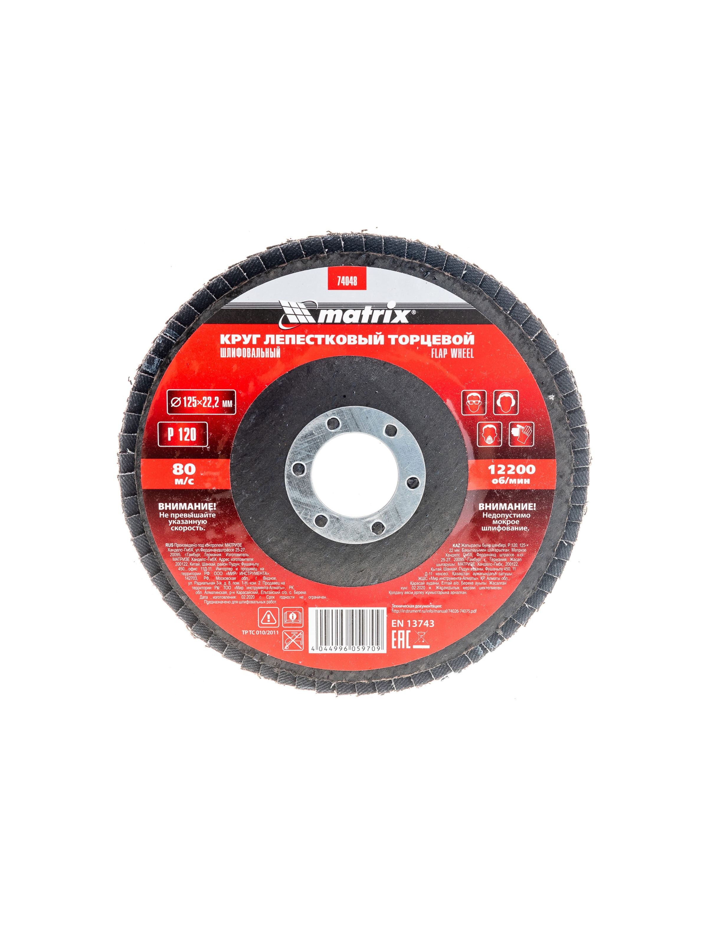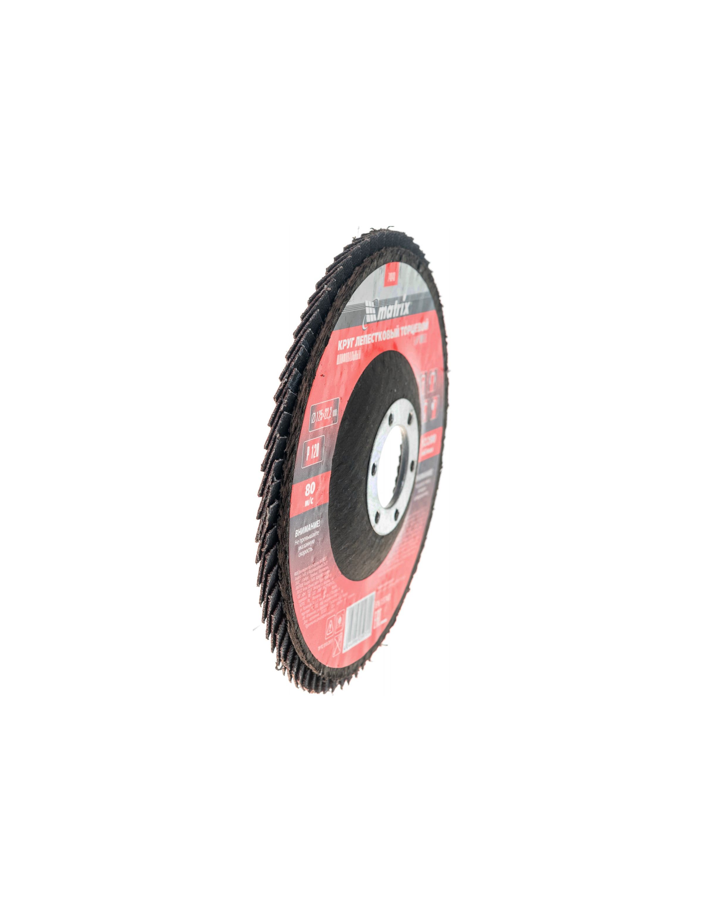 Круг лепестковый торцевой 125 х 22,2 мм зернистость P120 MATRIX 74048