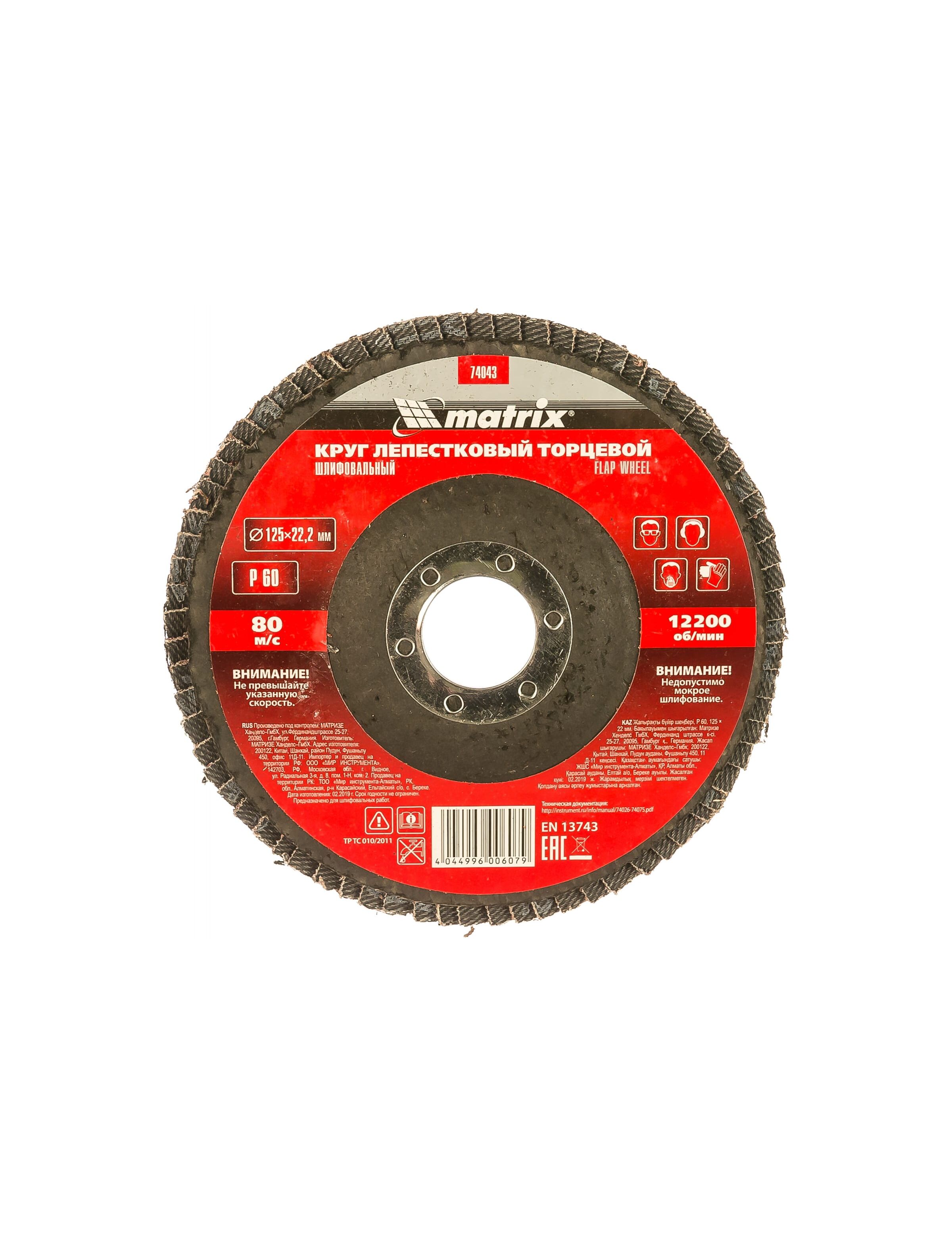 Круг лепестковый торцевой 125 х 22,2 мм зернистость P60 MATRIX 74043
