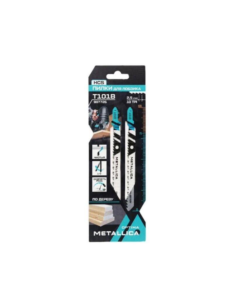 Пилки д/лобзика T101B, 100/75мм шаг 2,5мм, HCS чистый рез, по дереву 2шт METALLICA 907726