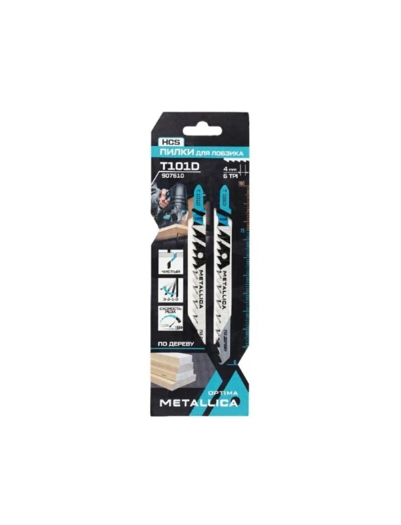 Пилки д/лобзика T101D, 100/75мм шаг 4мм, HCS быстрый рез, по дереву 2шт METALLICA 907610