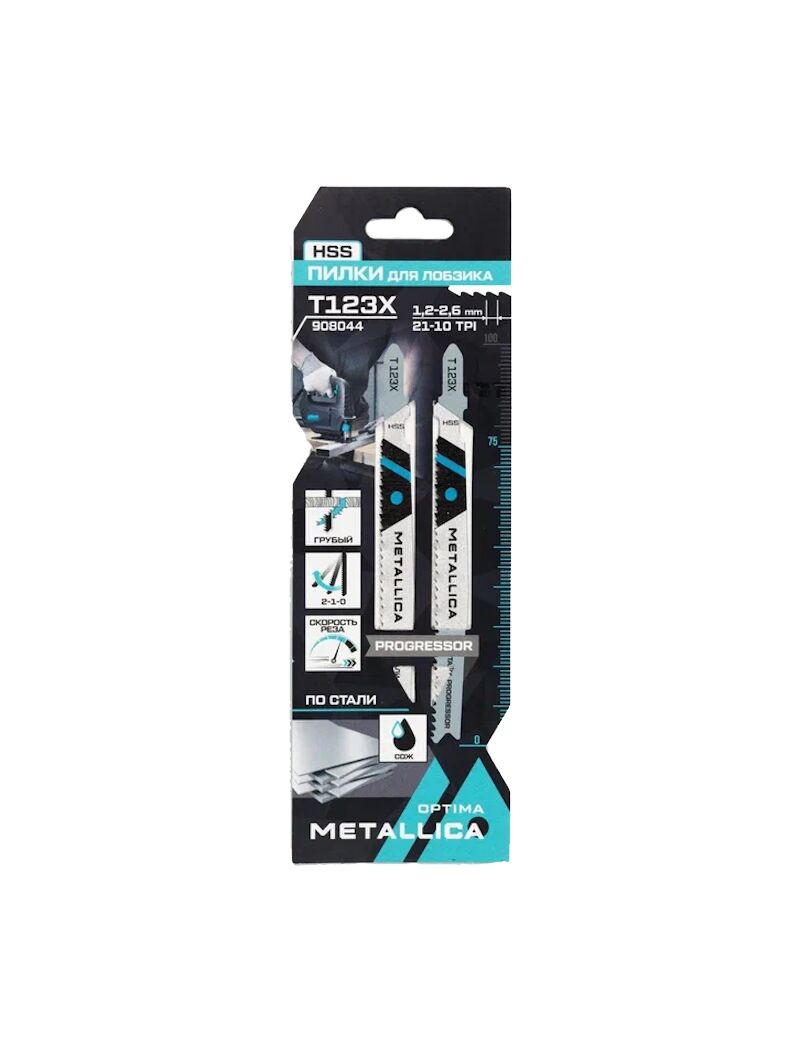 Пилки д/лобзика T123X, 100/75мм шаг 1,2-2,6мм, HSS Progressor, по стали 2-7мм 2шт METALLICA 908044