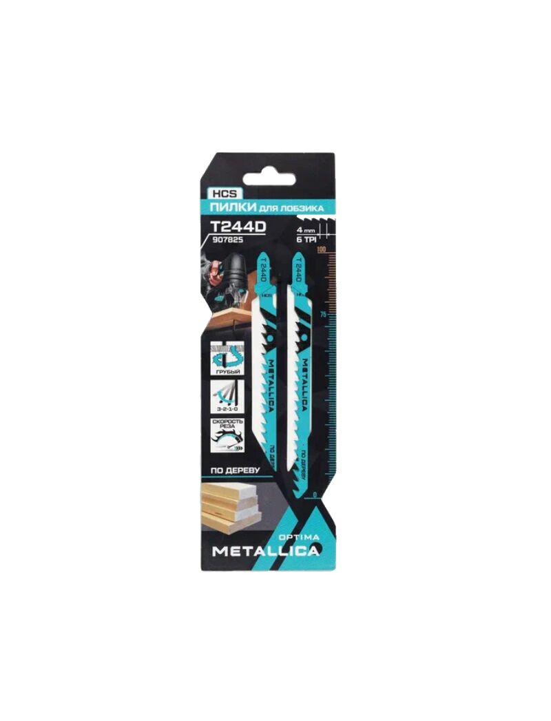 Пилки д/лобзика T244D, 100/75мм шаг 4мм, HCS грубый крив. груб.рез, по дер. 2шт METALLICA 907825