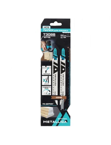 Пилки д/лобзика T308B, 115/90мм шаг 2,2мм, HCS яп/зуб, чист. рез, по дереву 2шт METALLICA 907795