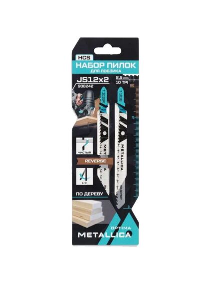 Набор пилок д/лобзика Optima №12 по дереву: T101B/T101BR, чистый рез, в карт., 2шт METALLICA 908242