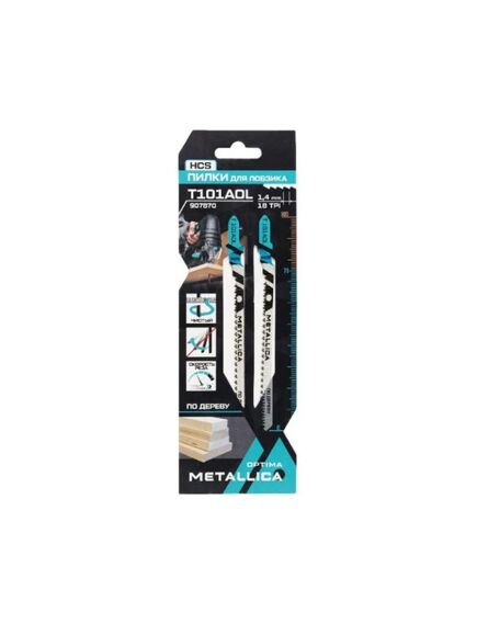 Пилки д/лобзика Metallica Optima T101AOL 907870 предназначены для чистого криволинейного пиления мягкой и твердой древесины, фанеры, OSB, ДСП, не хрупких пластиков. Возможно применение по ламинату, ЛДСП с кратным снижением ресурса в силу высокой абразивности материала.