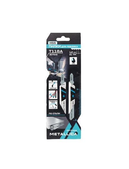 Пилка д/лобзика T118A, 75/50мм шаг 1.2мм, HCS прямой рез, по стали 2шт METALLICA 907948
