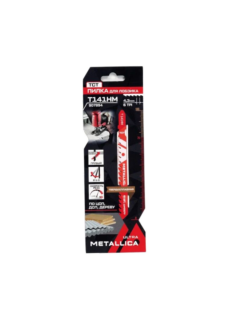 Пилка д/лобзика T141HM, 100/75мм шаг 4,3мм TCT, груб. рез, по ЦСП/ДСП/дереву 1шт METALLICA 907894