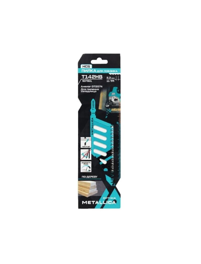 Пилка д/лобзика T142HB, 112/75мм шаг 2,3мм, HCS яп/зуб, прям.рез, по дереву 1шт METALLICA 907801