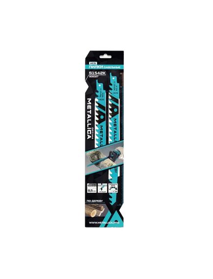 Пилки сабельные S1542K 240/215мм шаг 8,5мм, HCS по дереву 2шт METALLICA 908327