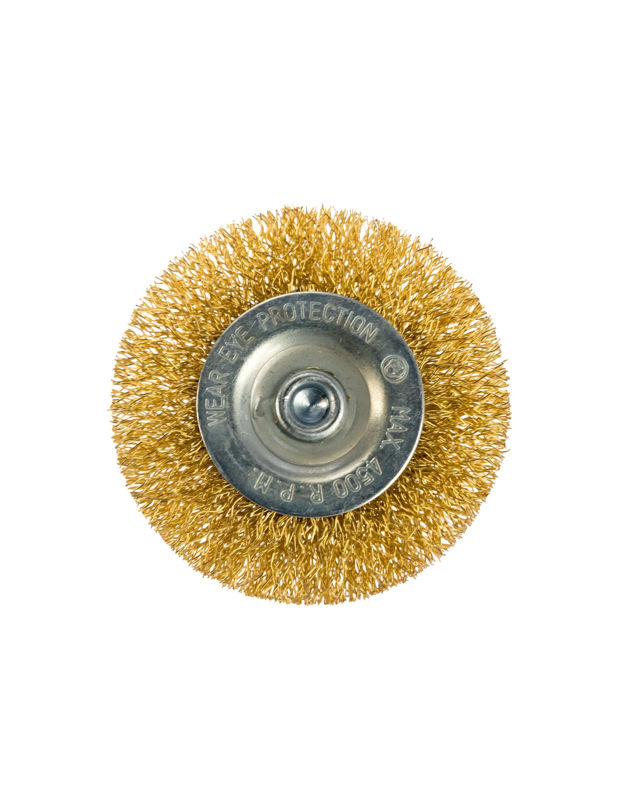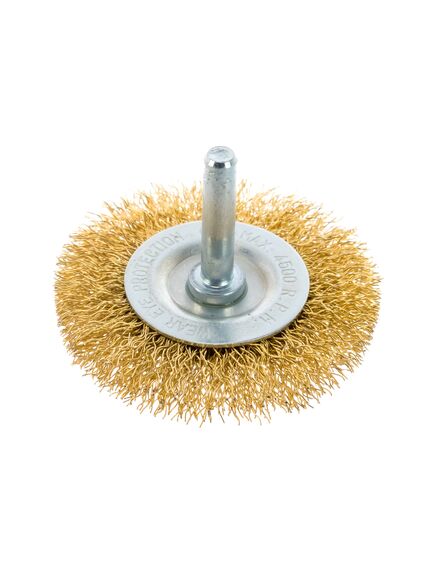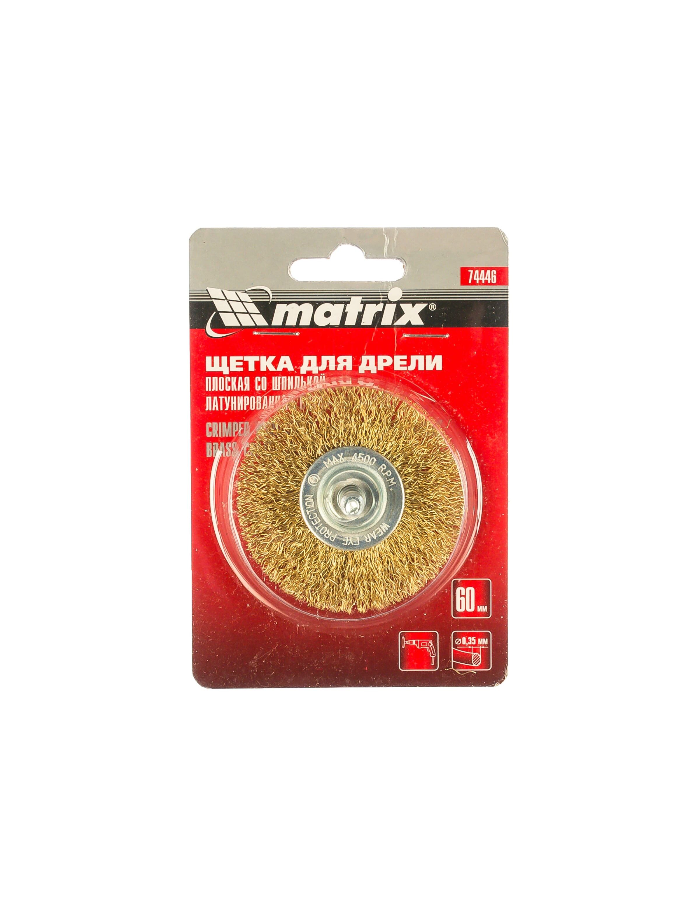 Щетка для дрели 60 мм плоская со шпилькой латунированная витая проволока MATRIX 74446