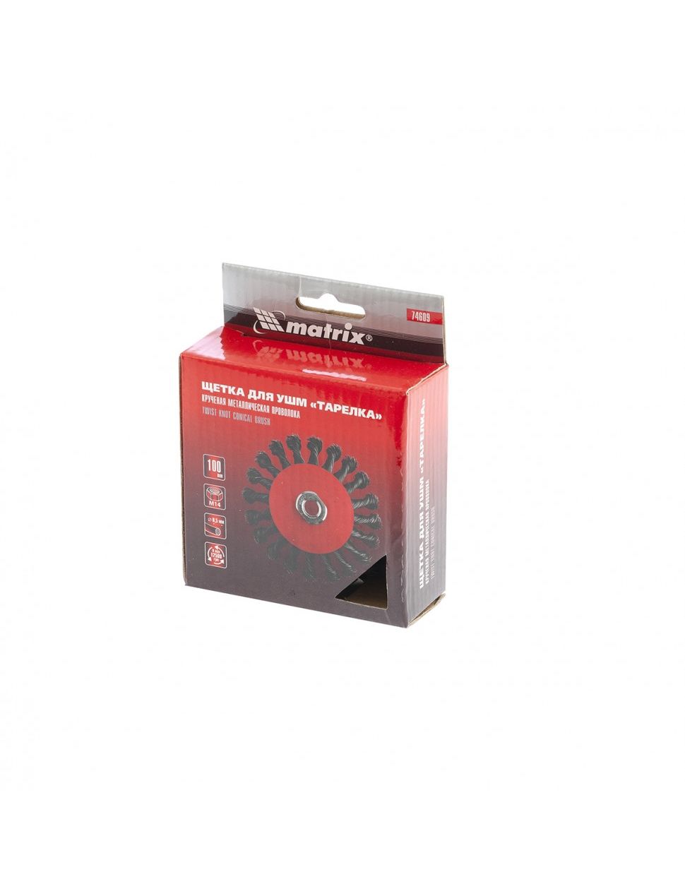 Щетка для УШМ 100 мм М14 "тарелка" крученая проволока 0,5 мм MATRIX 74609