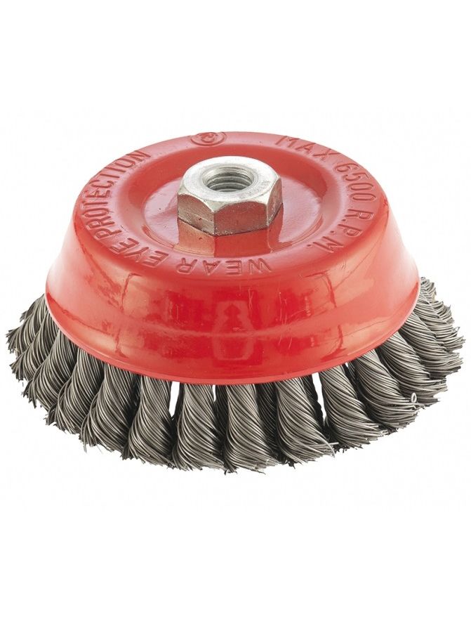Двухрядная щетка Matrix «Чашка» 74683 диаметром 125 мм, с крученой проволокой 0,5 мм, устанавливается на вал углошлифовальной машины с помощью гайки М14. Оптимально подходит для грубой (черновой) обработки: снятия старого слоя ЛКП, ржавчины и удаления загрязнений, зачистки сварных швов. За счет двух рядов проволоки щетка справляется с зачисткой больших поверхностей и работой повышенной сложности. Рекомендованная максимальная скорость работы — до 6500 об/мин.
