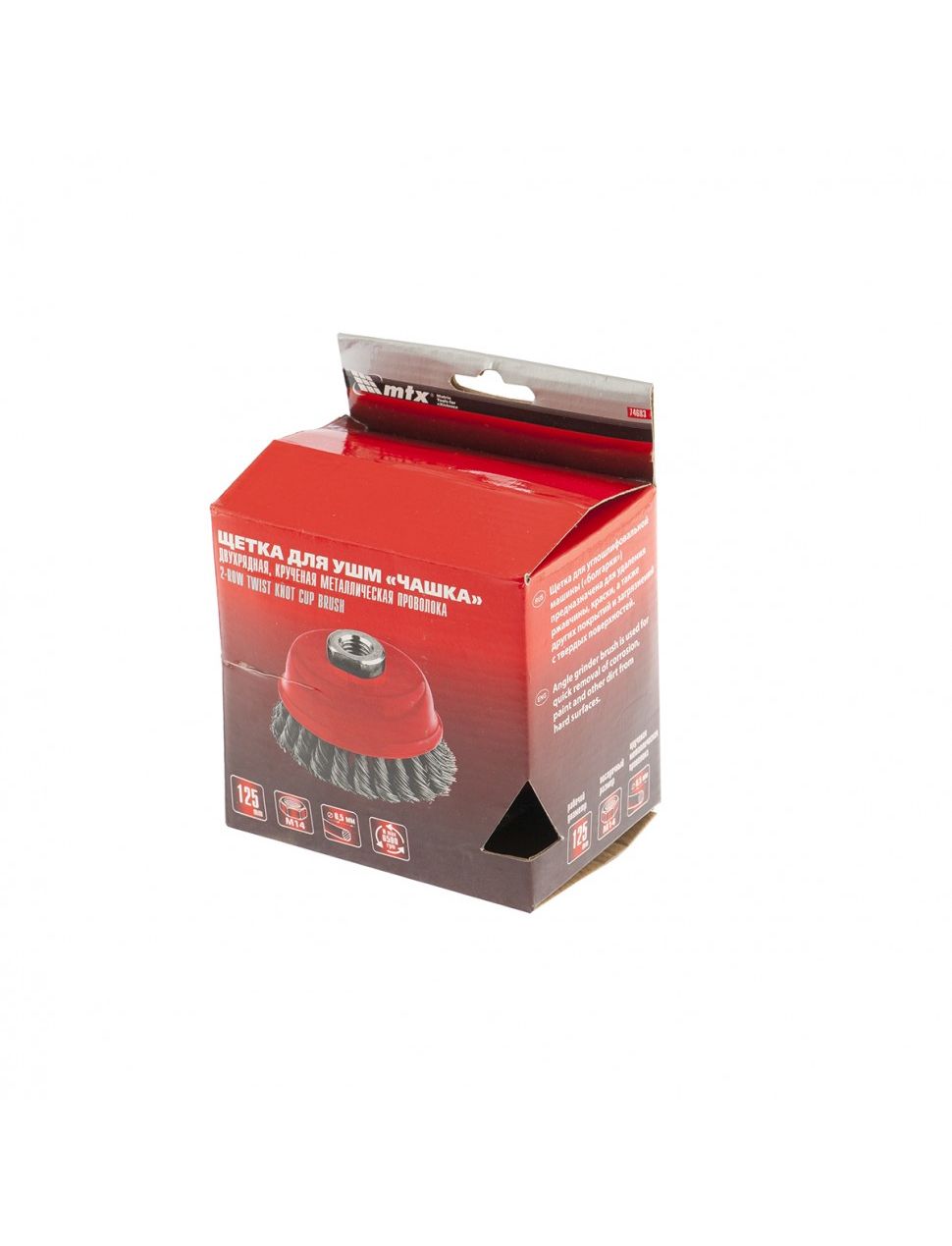 Щетка для УШМ 125 мм М14 "чашка" двухрядная крученая проволока 0,5 мм MATRIX 74683