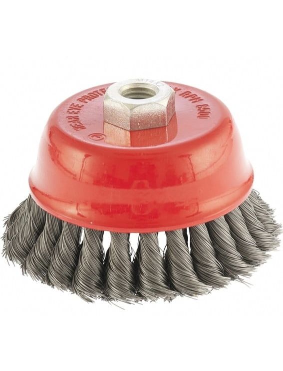 Щетка для УШМ 75 мм М14 "чашка" крученая проволока 0,8 мм MATRIX 74622