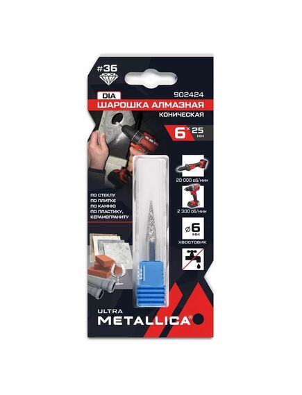 Шарошка алмазная коническая Metallica Ultra 902424 предназначена для обработки керамогранита, облицовочной плитки, керамики, кирпича, искусственного и натурального камня, абразивных пластиков и других минеральных материалов с помощью прямой шлифмашины или дрели. Применяется для снятия фасок, закругления кромок, расширения отверстий. Идеальный вспомогательный инструмент, применяемый при подгонке и укладке плитки, работы с отверстиями и криволинейными поверхностями.