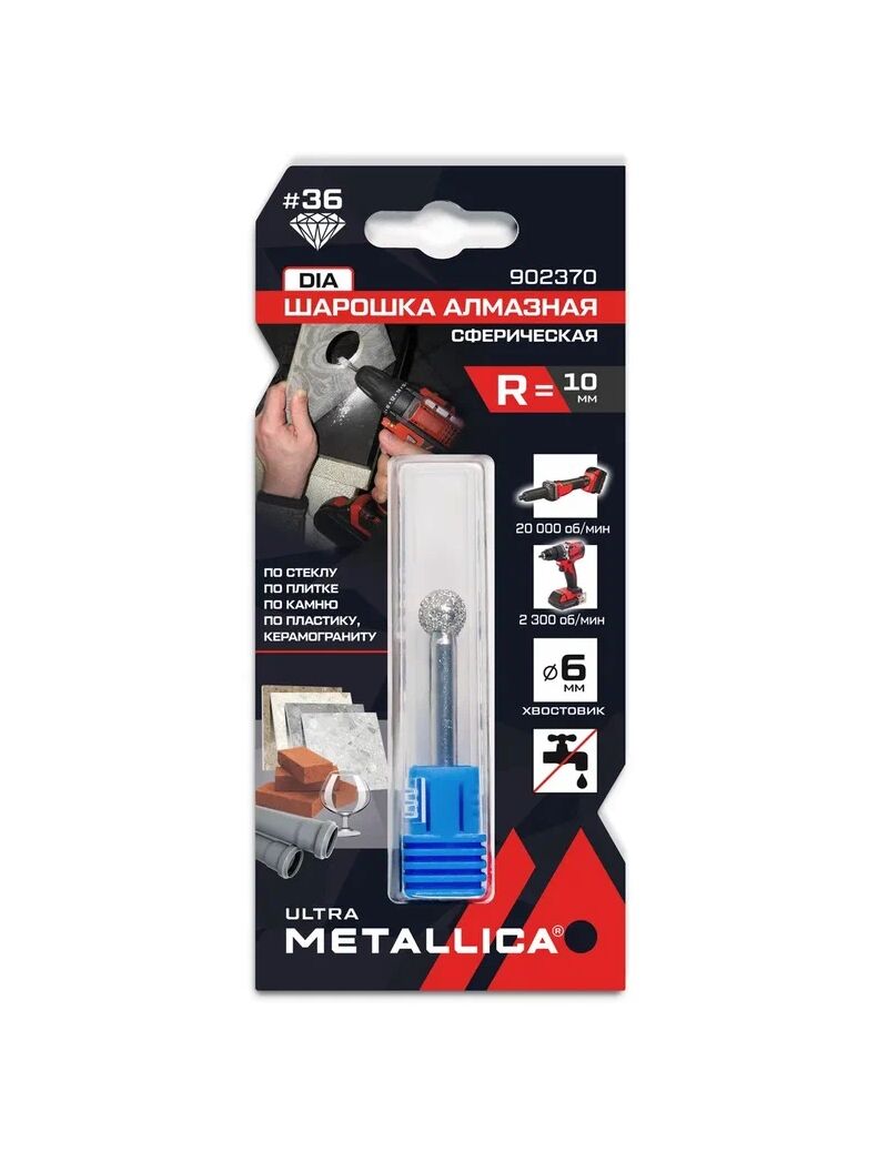 Шарошка алмазная сферическая 10 мм, #36, L=60 мм, по граниту, бетону, плитке METALLICA 902370