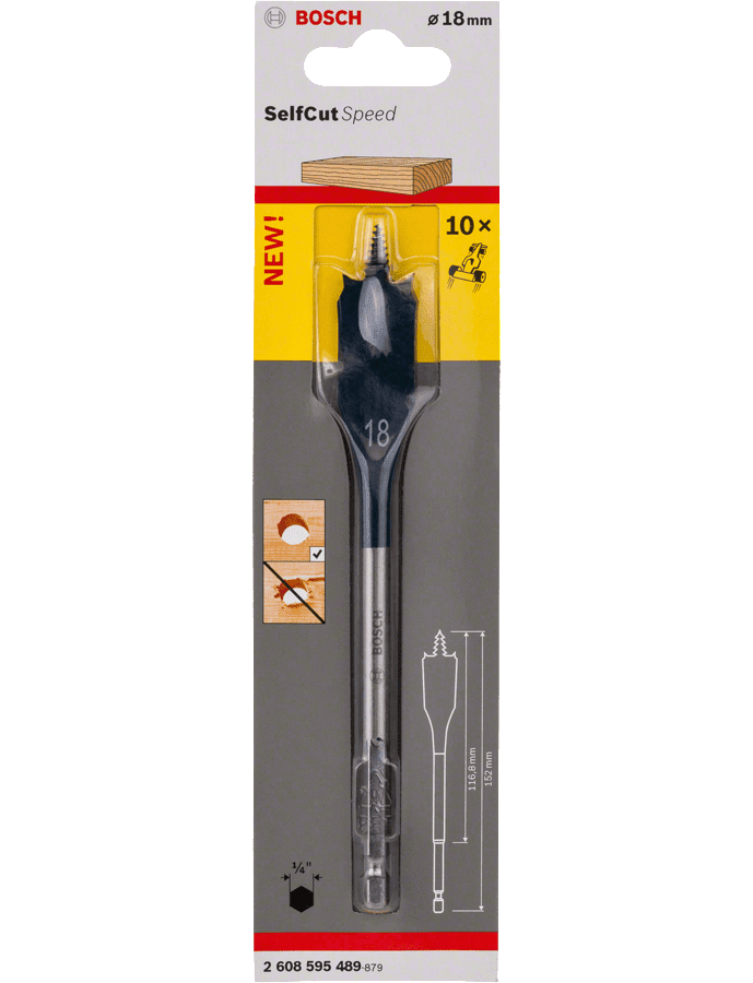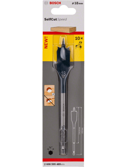 Перовое сверло Bosch 2608595489 предназначено для работы по дереву. С его помощью можно сверлить твердую и мягкую древесину, а также легкие строительные материалы, например, гипсокартон. По сравнению с плоскофрезерным сверлом данная оснастка сверлит в три раза быстрее, а точно заточенное острие, которое является самозатягивающимся, и режущие кромки позволяют производить отверстия точно заданного размера. Данное сверло из серии Self Cut изготовлено из улучшенной стали.