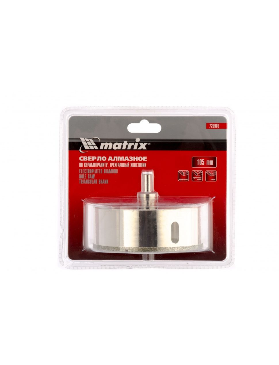 Сверло алмазное по керамограниту 105 х 67 мм трехгранный хвостовик MATRIX 726903