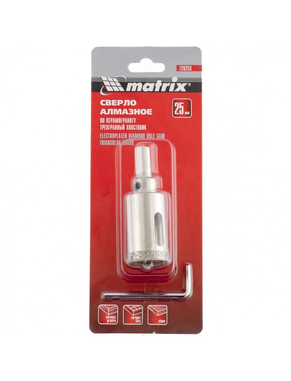 Сверло алмазное по керамограниту 25 х 67 мм трехгранный хвостовик MATRIX 726253