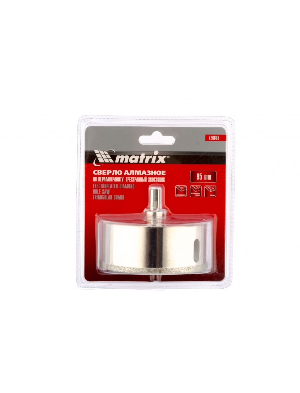 Сверло алмазное по керамограниту 95 х 67 мм трехгранный хвостовик MATRIX 726863
