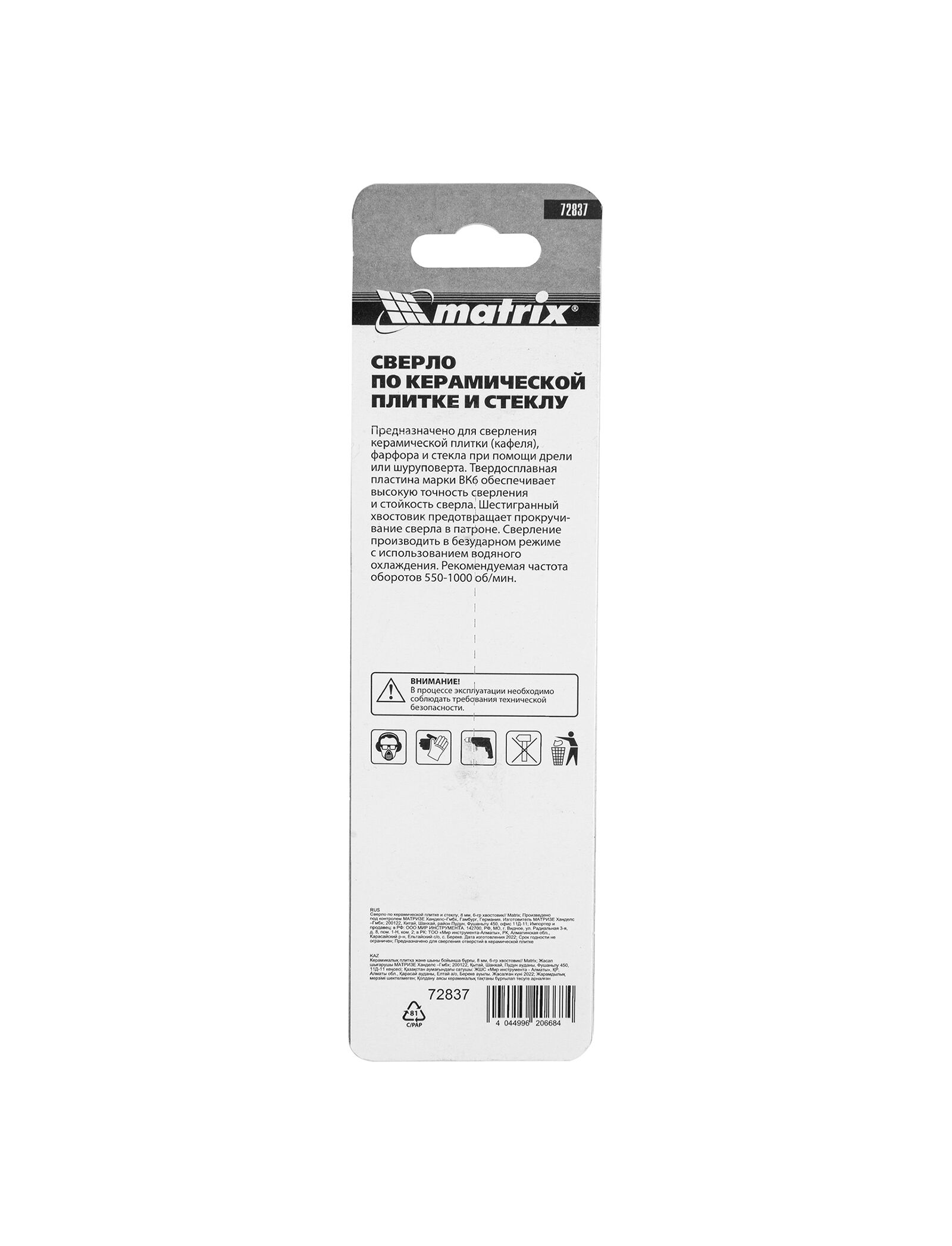 Сверло по кафелю и стеклу 8 мм шестигранный хвостовик MATRIX 72837