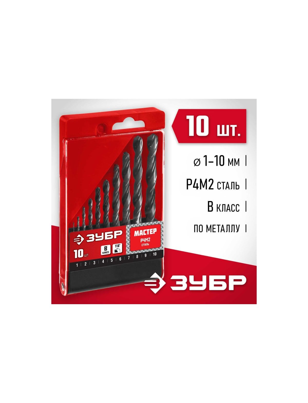 Набор сверл по металлу 1-10 мм (10 шт) Р4М2 ЗУБР 29605-H10