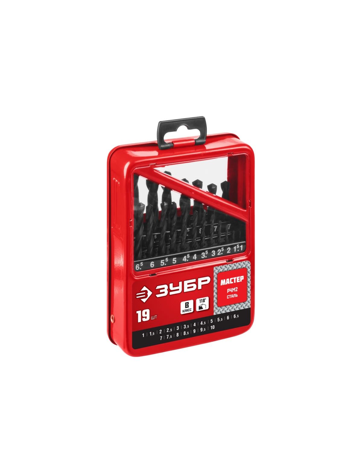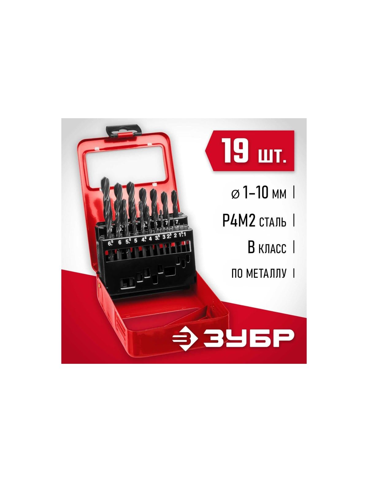 Набор сверл по металлу 1-10 мм (19 шт) Р4М2 ЗУБР 29605-H19
