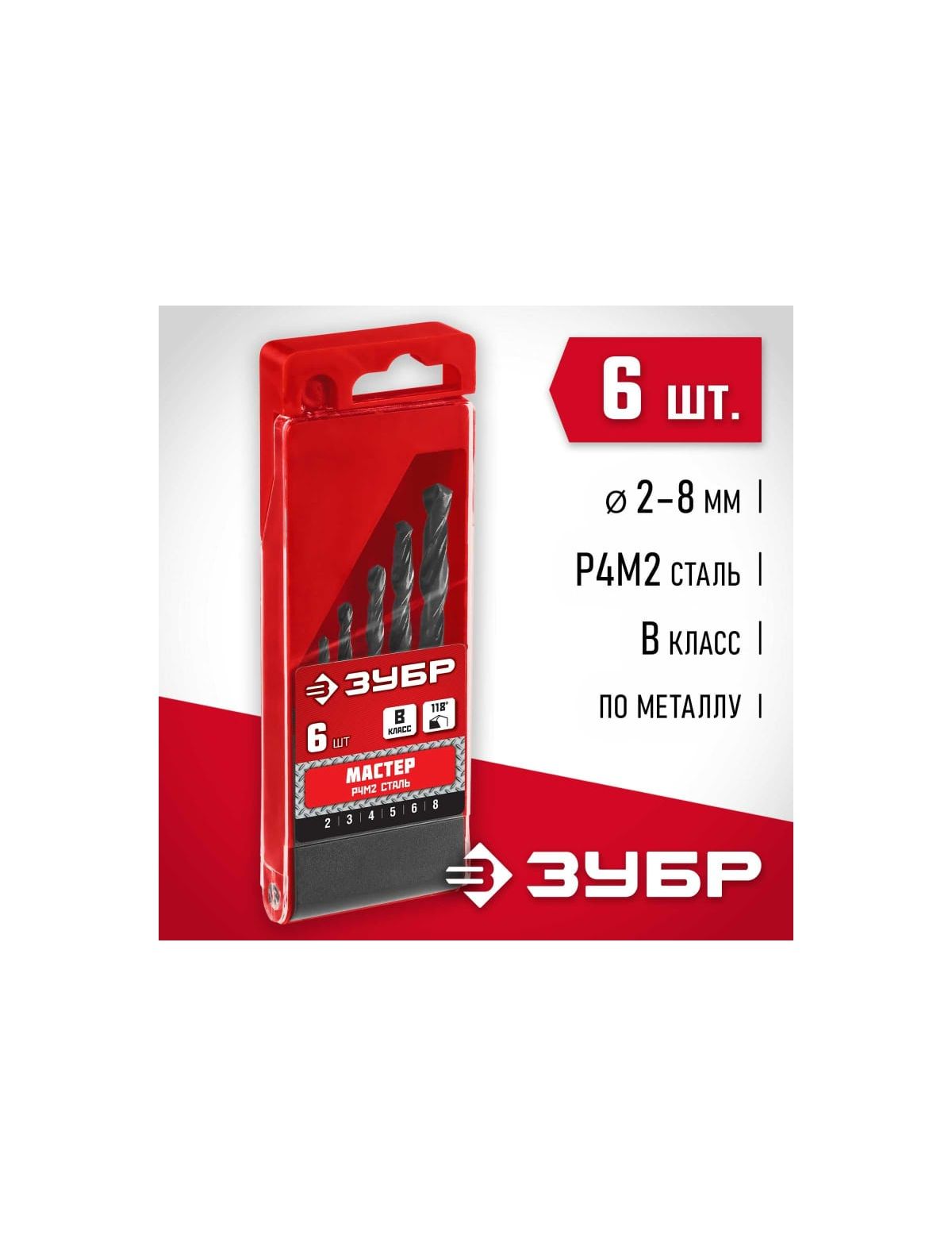 Набор сверл по металлу 2-8 мм (6 шт) Р4М2 ЗУБР 29605-H6