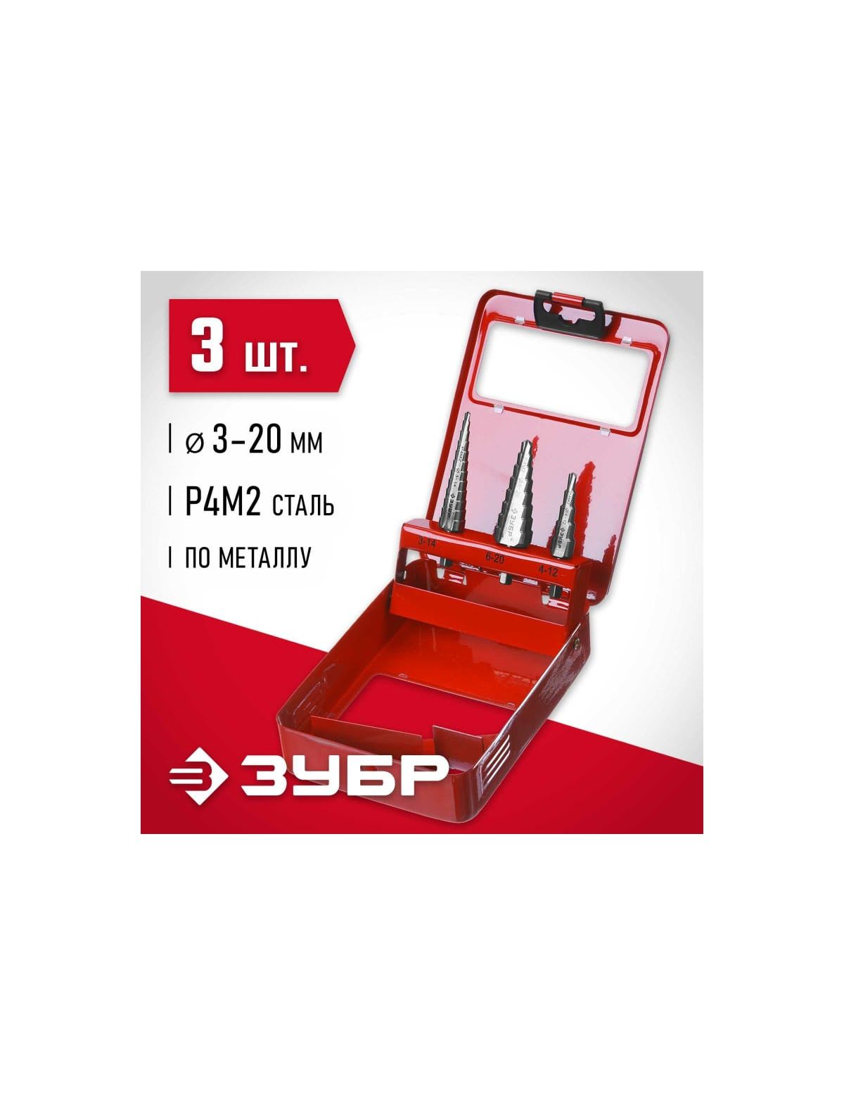 Набор ступенчатых сверел 3 шт 3-20 мм ЗУБР 29665-3-20-H3