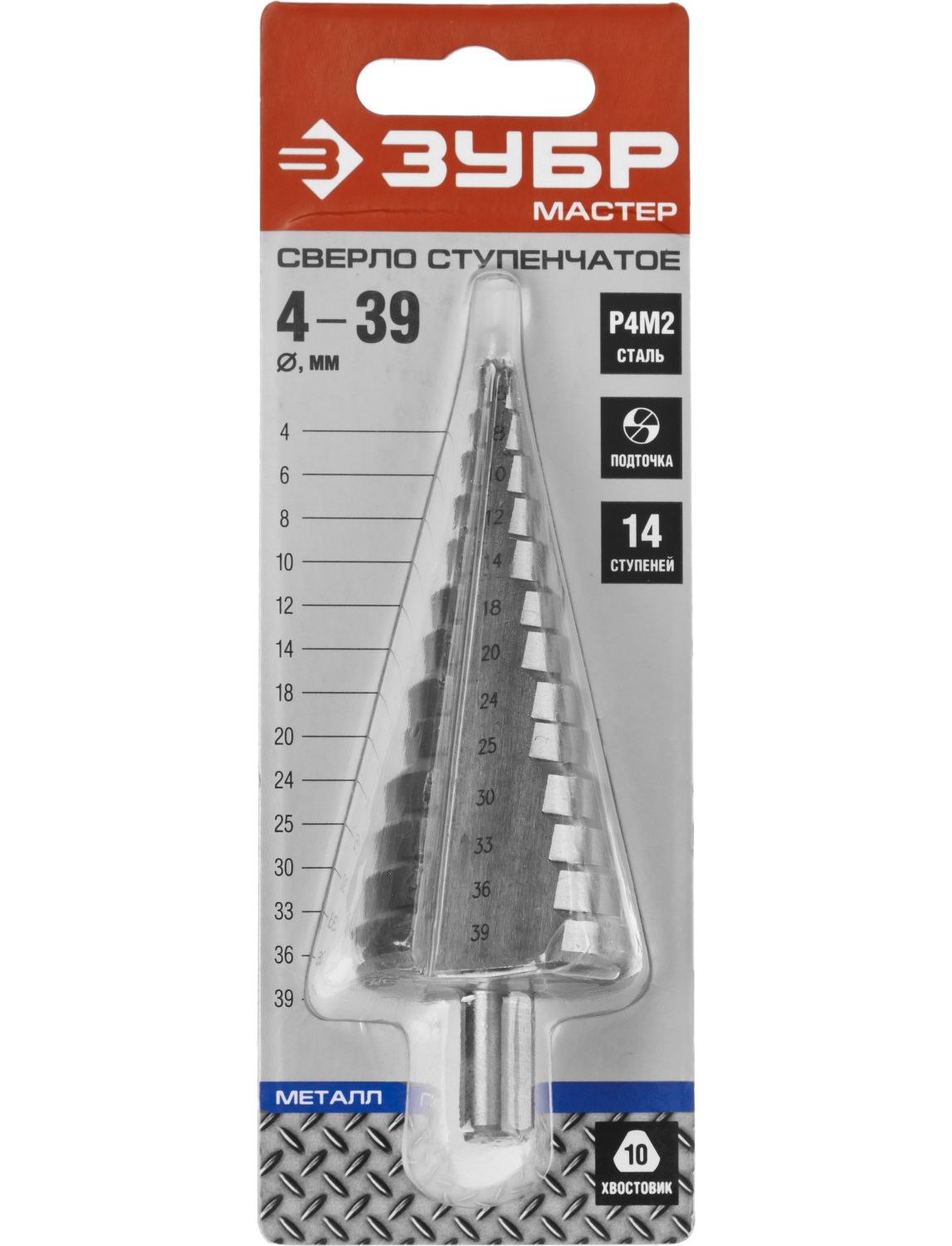 Сверло ступенчатое 4-39 мм 14 ступеней Р6М5 ЗУБР 29670-4-39-14_z01