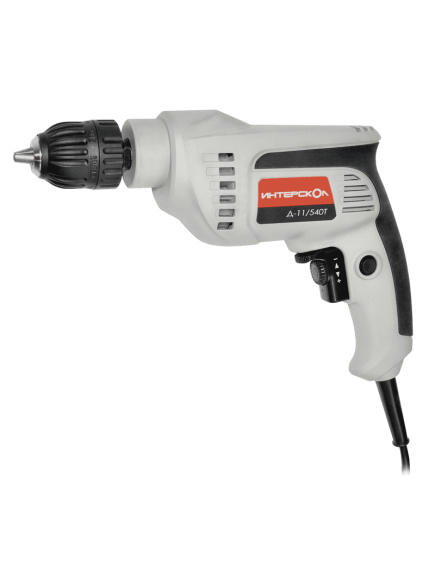 Дрель Интерскол Д-11/540 Т 226.1.0.40 - безударный инструмент с электронной регулировкой скорости. Благодаря быстрозажимному патрону, легко сменить оснастку. Обрезиненная рукоятка способствует лучшему удержанию дрели. На рукоятке инструмента расположена кнопка блокировки, которая обеспечивает продолжительную непрерывную работу. Максимальный диаметр сверления в древесине составляет 25 мм, а в стали - 11 мм.