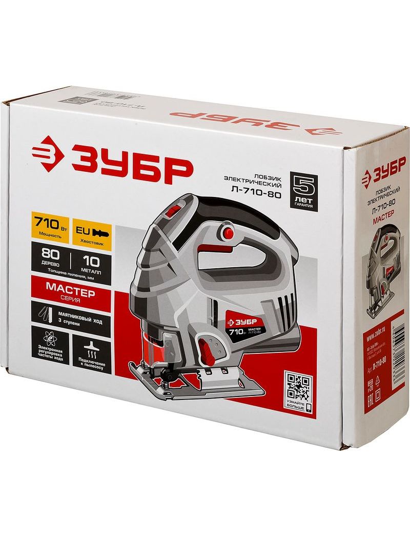 Лобзик Зубр МАСТЕР Л-710-80 используется для выполнения вырезов и продольных распилов дерева, металла, пластмассы. При помощи регулятора ступеней маятникового хода можно подобрать оптимальную скорость пиления для обрабатываемого материала даже во время работы.