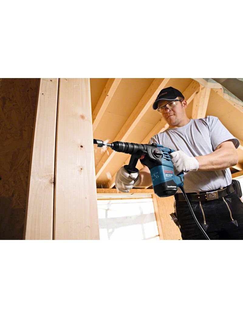 Благодаря системе Vibration Control вибрация перфоратора снижена на 10%. Г-образное исполнение перфоратора, делает его еще более удобным и комфортным, так как вес инструмента распределен равномерно. Предусмотрена возможность блокировки удара при сверлении в древесине и металле.