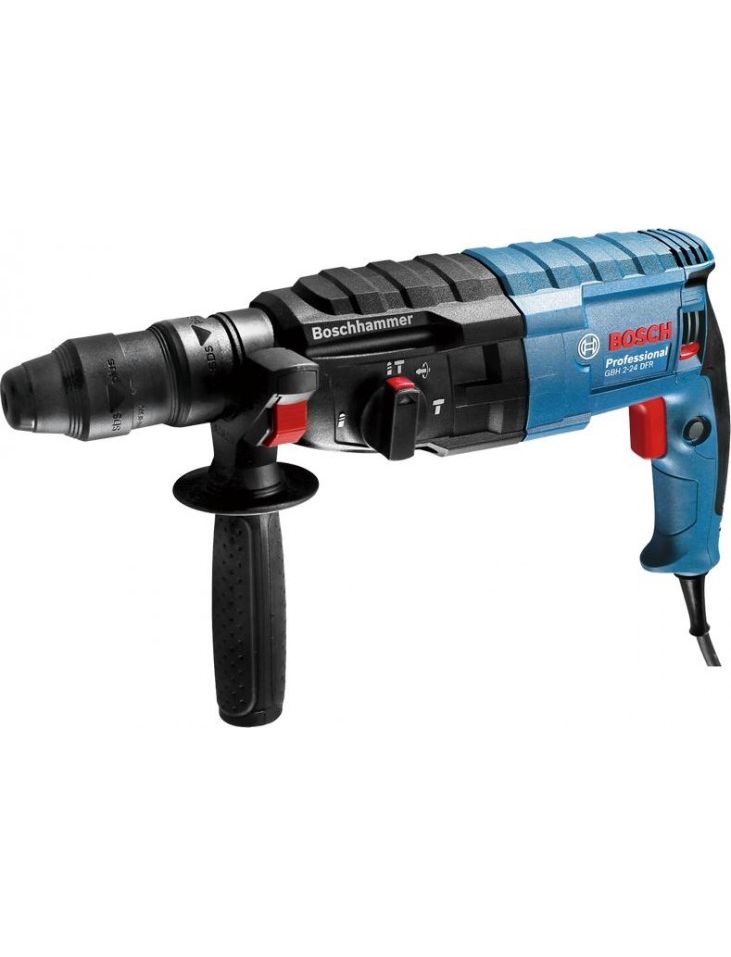 Перфоратор BOSCH GBH 240 F имеет опцию щеточного реверса для достижения одинаковой интенсивности вкручивания и выкручивания с металлическим ограничителем для глубины сверления.