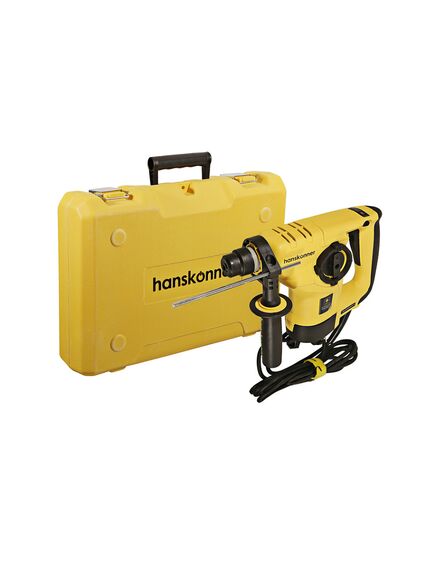 Hanskonner HRH0928DR – компактный и маневренный трехрежимный перфоратор с патроном под оснастку SDS Plus. Являясь представителем семейства перфораторов вертикальной компоновки, инструмент воплощает в себе все основные, присущие этому типу достоинства – возможность установки мощного двигателя при сохранении небольших размеров самого устройства, нейтральный центр тяжести, способность выдерживать повышенные нагрузки. Корпус инструмента выполнен из высококачественного пластика с применением нейлона и демонстрирует хорошую стойкость к ударам и воздействию низких температур. Прорезиненные накладки SoftGrip на задней рукояти и рифление дополнительной рукояти способствуют надежности хвата, а широкая пусковая кнопка ErgoSwitch способствует комфорту в процессе работы. Модель оснащена 980 Вт электродвигателем с дополнительной защитой от абразивных частиц и пыли и усиленным ударным механизмом, развивающим энергию удара в 3.8 Дж – это позволяет с легкостью бурить отверстия до 28 мм в материалах различной твердости, и использовать коронки различных диаметров (бетон до 40 мм / кирпич до 68 мм). Перфоратор имеет три режима работы – в зависимости от поставленной задачи, пользователь выбирает нужный: сверление, сверление с ударом, удар. Функция смены режимов работы удобно реализована с помощью единственного переключателя OneTwist. Также, предусмотрена функция реверса TriggerReverse. Благодаря установленной в Hanskonner HRH0928DR предохранительной кулачковой муфте SafetyClutch, предотвращается опасность проворачивания инструмента в руках в случае заклинивания оснастки в материале. Сетевой морозостойкий кабель 4VelcroRubber имеет резиновую изоляцию, что сохраняет его гибкость и эластичность в условиях низких температур, а четырехметровая длина кабеля дает возможность использовать инструмент без применения дополнительного сетевого удлинителя, гарантируя рабочую зону площадью до 50 м2. Для удобства фиксации кабеля предусмотрен ремень-липучка. Модель комплектуется вместительным пластиковым кейсом для хранения и транспортировки инструмента и аксессуаров.