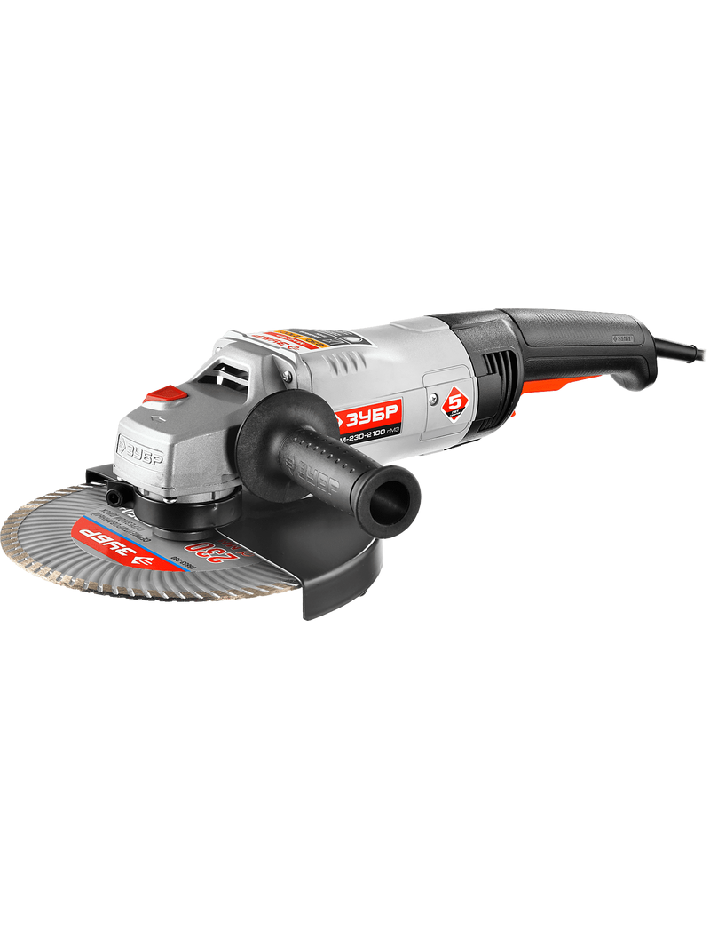 Углошлифовальная машина Зубр МАСТЕР УШМ-230-2100 ПМ3 предназначена для выполнения таких работ, как шлифовка, зачистка поверхностей и резка деталей из различных материалов. Блокировка шпинделя позволяет безопасно сменить диск. Для начала работы без рывков, в инструменте предусмотрен плавный пуск. Удобный ползунковый переключатель фиксируется в положении старт - для продолжительной работы.