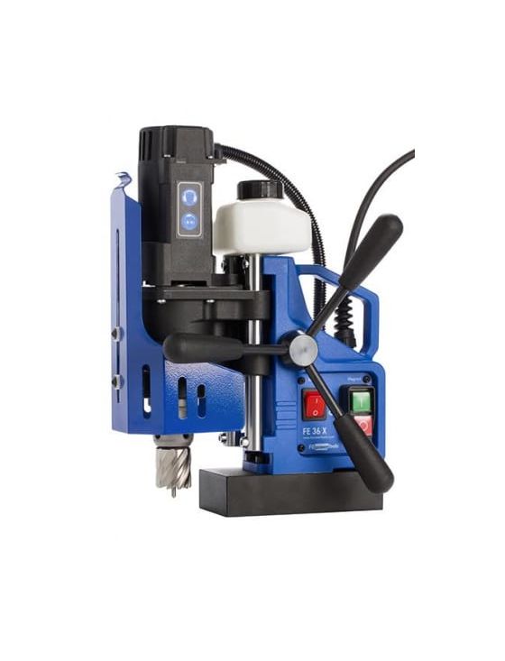 Сверлильная машина на магнитном основании FE PowerTools FE 36 X отличается высокой эффективностью в работе. Модель имеет небольшие габариты и компактный корпус, поэтому не занимает много места при хранении и транспортировке. Специальное магнитное основание обеспечивает надежное крепление и устойчивое положение во время эксплуатации. Агрегат позволяет успешно работать в различных плоскостях. Прекрасно подходит для сверления труб значительного диаметра. Предусматривается система СОЖ для безопасной и качественной работы. Машина обладает износоустойчивостью и прослужит длительное время. Работы проводятся корончатым сверлом максимального диаметра до 40 мм, а также спиральным - до 13 мм. Двигатель защищается от перегрузок и перегрева. Оборудование имеет простое управление и не требует специального технического обслуживания.