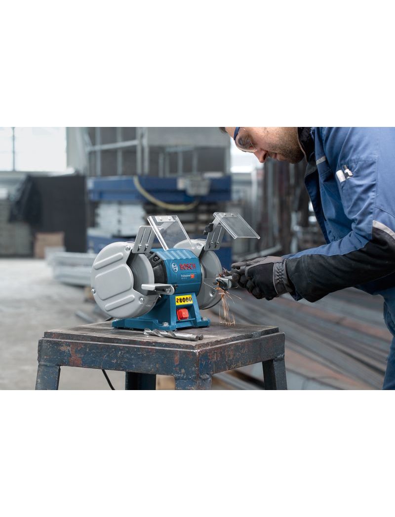 Точило Bosch GBG 35-15 060127A300 разработано для использования в бытовых условиях. Плюсами конструкции является резиновая подкладка под основой, которая поглощает вибрации, пылезащищенный выключатель и низкий уровень шума. Небольшие размеры устройства позволяют разместить его даже в небольшом помещении. Оба диска закрыты металлическими чехлами.