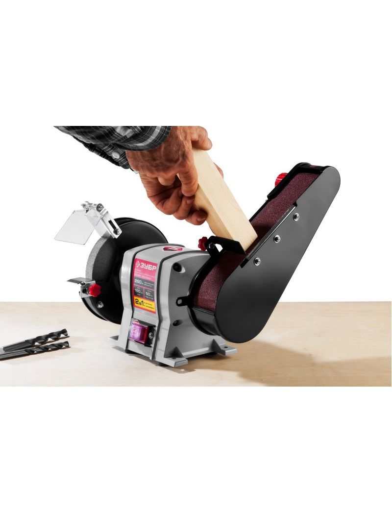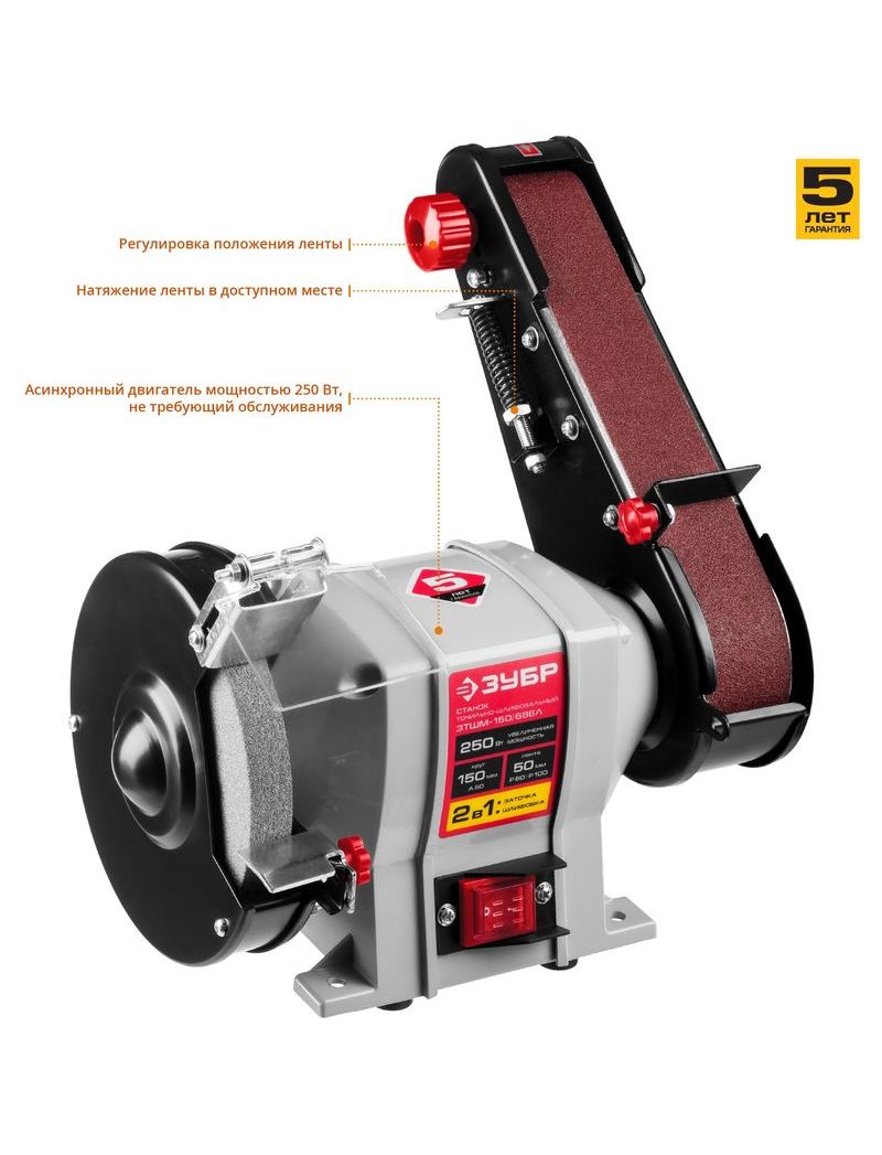 Точильный станок ЗУБР ЗТШМ-150/686Л - это малогабаритный станок для заточки сверл или другого металлического инструмента. Комбинированные заточные станки универсальны в своем применении, так как есть возможность обработки поверхности деревянных или пластиковых изделий на ленточной части. Длина ленты станка - 686 мм а ширина - 50 мм, это позволяет обрабатывать достаточно крупные заготовки в бытовых условиях. Экономичный электродвигатель справляется с заточкой твердосплавных сталей, например, сверла с победитовым наконечником.