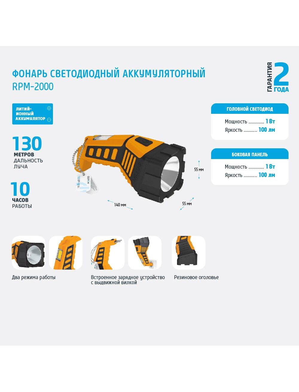 Фонарь аккумуляторный ФОТОН RPM-2000 (1W)