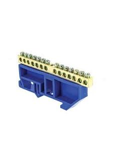 Шина ЭКФ "0" N (6х9мм) 14 отверстий латунь синий изолятор на DIN-рейку PROxima