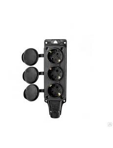 Розетка 3-я 16А 220В IP54 с заземлением каучук с заглушками черная