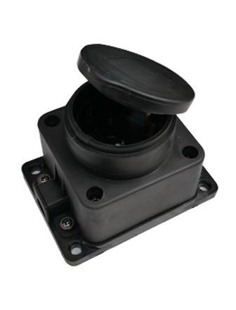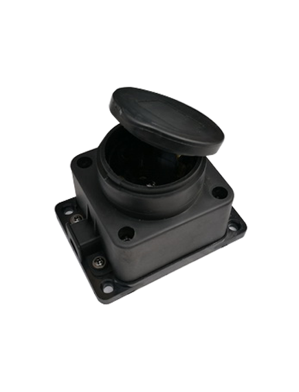 Розетка 1-я 16А 220В IP44 с заземлением каучук с заглушками черная