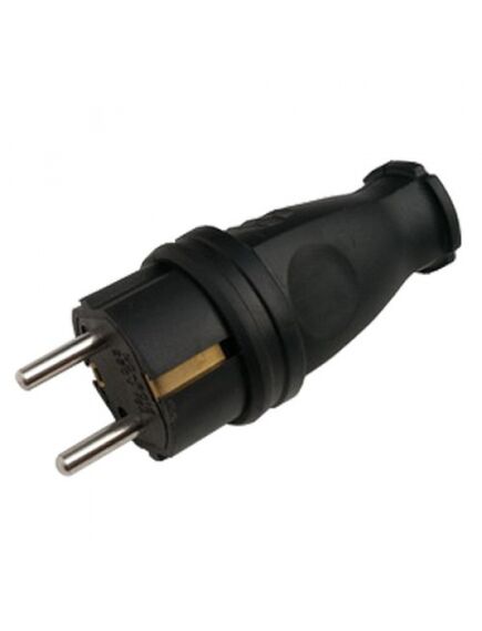 Вилка прямая с заземлением каучук 16А IP44 черная