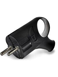 Вилка угловая с кольцом 16А c з/к черная IN HOME 4220