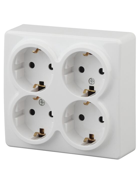 Розетка четверная накладная 4х2P+E с з/к со шторками белая Эксперт ЭРА 11-2211-01