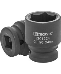 Головка торцевая ударная 1/2"DR, 24 мм. Торцевые головки Thorvik изготовлены с применением технологий, позволяющих передавать усилия, превышающие расчетные по современным стандартам на 30%. Широкий диапазон размеров, типов и профилей, высокая точность обработки, качественная хромомолибденовая...