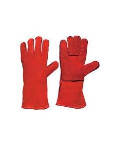 Краги из качественного спилка (толщина 1,2мм), пятипалые, красного цвета. Подкладка из плотной 100% хлопковой ткани, на тыльной и ладонной части дополнительный термоизолиющий слой флиса. Усиление швов:спилковыми вставками. Швы прошиты огнеупорной нитью KEVLAR. Длина: 35-37 см Размер 10,5