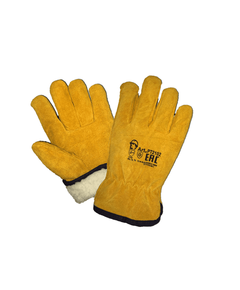Перчатки ДРАЙВЕР цельноспилковые из КРС спилка сорт АВ. Утеплитель: искусственный белый мех (""барашек"", 600гр/м2) На запястье: резинка. Цвет спилка: желтый.